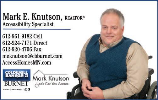 Rep. Sandra Masin (DFL-Eagan) has sponsored legislation that would require new design standards for future light rail transit vehicles on the Blue Line and soonto-open Green Line rail services. Dedicated wheelchair space and companion seating would be required on each train car. Metro Transit is in support of the change. Another transportation issue moving ahead would expand eligibility for disability vehicle license plates. The bill, also sponsored by Masin, would allow the parents or legal guardians of people with disabilities to qualify for permits. It would also require new language on disability parking space signs. The signs would tell drivers to clearly display disability parking authorization and to park in the center of the space. The bill would require that this information, which is already included in state law, to be added to parking signs. ■