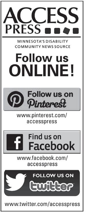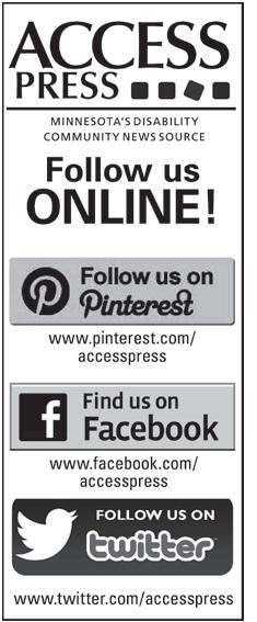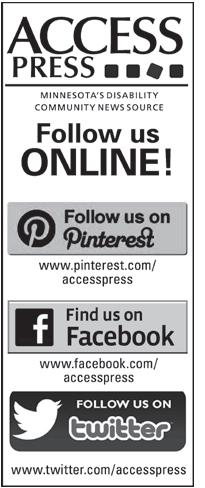 SUBSCRIPTION: Free and accessible to anyone in MInnesota, visit www.accesspress.org to subscribe. ABOUT ACCESS PRESS: A monthly newspaper published for persons with disabilities by Access Press, Ltd.