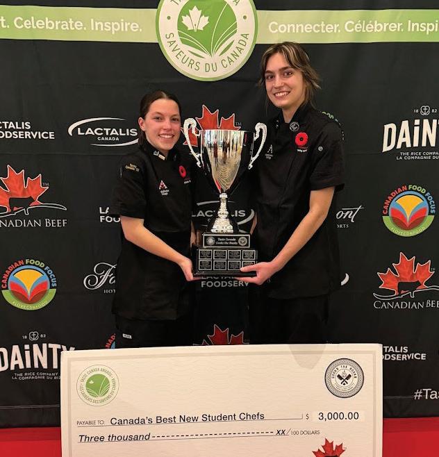 Two culinary students from Assiniboine College, Alicia DeCosse and Presley Kuharski, earned top honours in November at the Taste Canada Cook the Books competition held in Toronto. The event, part of Taste Canada’s annual celebration of Canadian culinary talent, challenges students from across the country to create globally inspired dishes using Canadian-grown ingredients, judged by a panel of culinary experts.