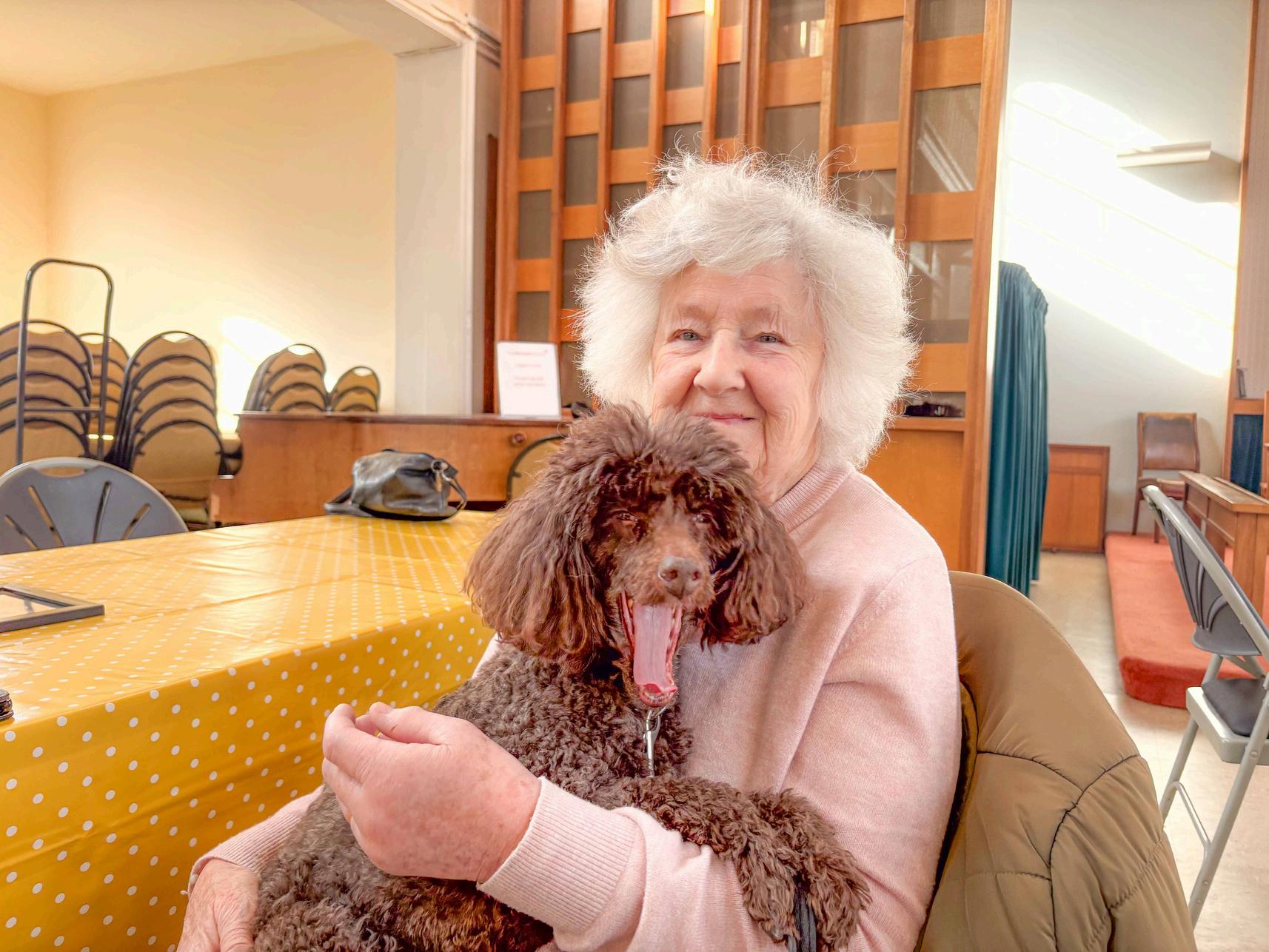 Sheila: “Where I go she goes! Joannie, that is, not Chris (laughs) Joannie is a hearing dog She listens for the telephone and doorbells ”