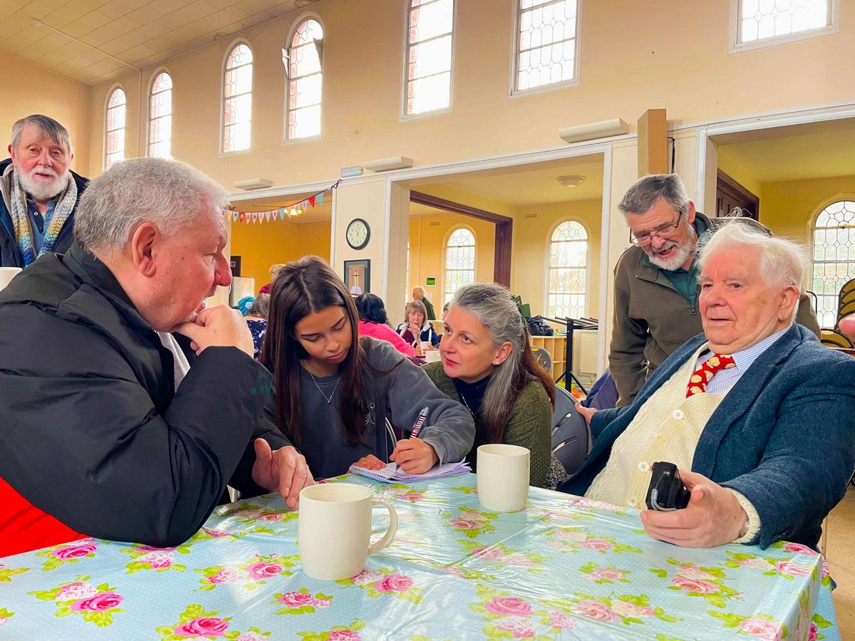 Our teenage advocates stepped up and created mini-films based on the memories of the elderly residents they talked to; they scanned old black and white prints that had spent the last decade in photo albums or shoe boxes and brought a new lease of life to them by colourising them, using the AI inbuilt in the latest graphic design apps They shared their hopes for the area of Acomb and listened closely to the memories of what Acomb used to be like more than half a century ago, with some specific focus on the building of Lidgett Methodist Church The conversations widened, and the mood was so positive and pride in the weekly Pop Ups so palpable, that we hit on an idea Lidgett Methodist Church is readying to celebrate its 99th year anniversary. What if we circulated around the room and recorded 99 reasons why the weekly cafe is such a successful proposition? It was a blast. We got to know a lot of wonderful people, with generous anecdotes and memories, in a room that vibrantly celebrates friendship, toddlers, elderly residents, music, and cake. These pages are our small attempt to chronicle the bright stories we were received Thank you, Lidgett Methodist Church, keep up the good work The tough times are a little less dark with the light you nurture