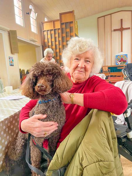“One word. Company. I’m always sat with lovely smiling people, and my dog, Joanie, loves coming here, especially when Pam here gives her a treat Joanie is a hearing dog, she helps me hear things, so it’s lovely that she is made so welcome too.” (Sheila)