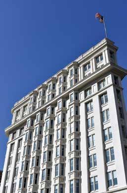 The 11-story Flatiron Building, Atlanta’s oldest standing steelframed skyscraper, predates New York City’s more famous, 22-story Flatiron Building, which was completed five years later in 1902. Although similar in shape, their styles and architectural features are different. The Atlanta Flatiron Building boasts stunning bay windows along its Peachtree and Broad Street façades, and its location adjacent to Woodruff Park provides an exquisite setting for this architectural gem in the heart of downtown Atlanta.