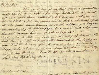 John Ruskin’s ‘First letter’, written by his mother at his dictation and signed by himself, 15 March 1823 (Ruskin Foundation)