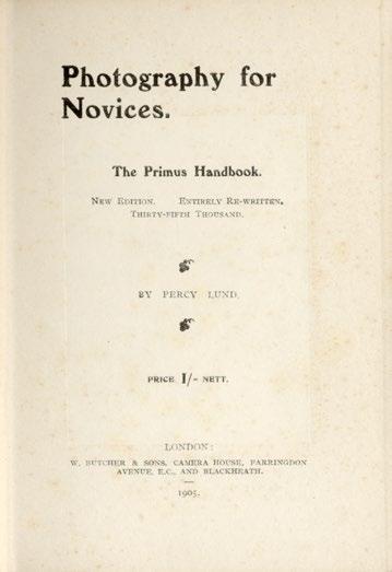 Above The Primus Handbook, Photography for Novices, 4th Edition, Entirely Rewritten, by Percy Lund. Published by W. Butcher & Sons, 1905.