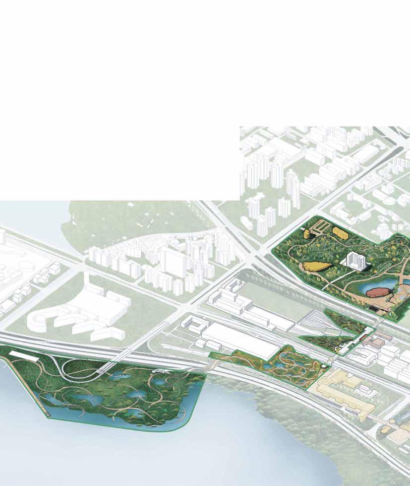 The commission for the Shenzhen Mangrove Museum and surrounding urban renewal started with the need to study the urban context of the proposed museum site. The selected site was on the roof of a maintenance facility for Metro line 11, a vast concrete platform of over twenty-seven hectares. This site needed master planning because it lacked pedestrian access and visibility from surrounding streets. The temporary building on the deck was to be demolished,