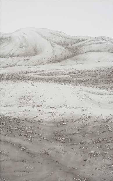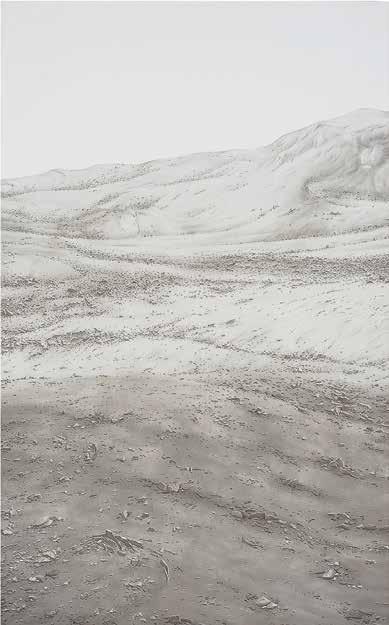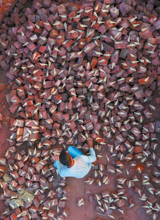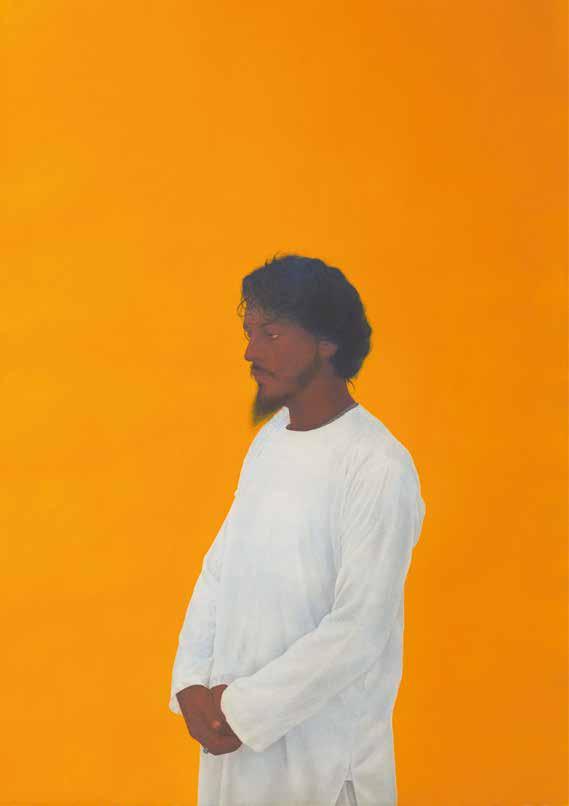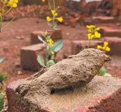 Ali comes from a modest town – Pattoki, in central Punjab –and he is by all accounts a modest man. His artistry began in the commercial world of painting circus hoardings. But his home is also close to Harappa, one of the great cities of the 5,000-yearold Indus Valley civilisation, and the inspiration for his work comes as much from there as it does contemporary Pakistan. His visit to the Harappan sites in 2013 was clearly a transformational moment, and The Ruins series which followed reaches back to the deep, pre-Islamic traditions of the territory which is now Pakistan. An abiding love of terracotta followed, and a sense of both the lasting power and fragility of clay. one can see this again in the 2020 installation of 3,000 unbaked clay birds at an abandoned brick factory in Lahore, which lasted until the rain fell and the clay birds turned once more to earth.