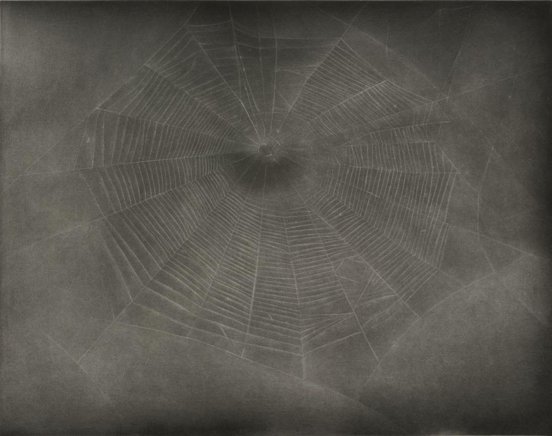 And yet, in Weight , the bunk sits veiled behind a screen of metallic lace that softens its edges and secretes it away, creating a cocoon or enclosure that might seclude its imagined occupant. Like the mosquito net on which it is based, it is dense enough for protection while still allowing light and air to pass through. It fends off danger while enabling sleep. Far from the immovable walls and opaque limits of the prison cell, the golden tent provides a permeable space in which to dream and think beneath the “leaden sky.” 5 Through it one can look out as well as see in, albeit through a heavenly haze. Through it the imagination can soar.