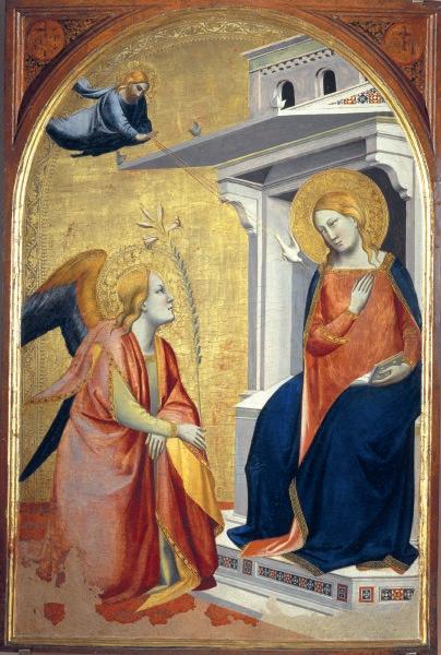 The Virgin Mary’s slightly reticent posture (Luke 1:26–38) perhaps allows us to surmise that the artist knew Simone Martini and Lippo Memmi’s work from 1333, while the depiction of the lily branch held by the archangel Gabriel, and not in a vase at Mary’s feet, is one of the earliest we are aware of, along with those found in some small triptychs by Bernardo Daddi, for example in Altenburg (Lindenau Museum, inv. 15). The choice of iconography was incredibly successful, and was reworked, in some cases multiple times, from the second half of the 14th century onwards, by painters including Pietro Nelli (Oro), the Master of the Misericordia (Chiodo, Corpus IV/9, pp. 266–9, 277–9), an anonymous painter who it has been suggested could be Giovanni Gaddi, the son of Taddeo and Agnolo’s elder brother (Boskovits, Pittura fiorentina, pp. 64–5), Tommaso del Mazza (Deimling–Pasquinucci, Tradition), Lorenzo di Bicci (Boston, Isabella Stewart Gardner Museum, inv. P15s2) and Lorenzo Monaco (Lorenzo Monaco).