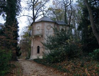 Velleda, an isolated tower at the back of the park which served as his study. Its stone floor and fireplace are strongly reminiscent of Rousseau’s ‘Donjon’ at Montmorency, although the original façade, romantically crumbling when I first saw it, has been rather too enthusiastically restored. Continue past the Tour to the Glacière (ice-house), eventually turning left to go right round the park and back to the salon de thé, past some remarkable trees and a little stream on your right. I have seen bluebells, Solomon’s Seal and cowslips growing here in spring.