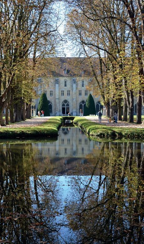 of it, past the horizontal perspective stretching downhill. Follow the map to the Petit Canal, the size of a very long swimming pool. This green-tinted stretch of water was once a carp reservoir for the Petit Château and has only recently been restored. It is a tranquil, mysterious place, almost hidden from view, with only a few people quietly sunning themselves around its grassy verges, overhung with roses. If you look for a gap in the trees roughly halfway along its length you will have a last view of the Grand Canal stretching in an unbroken line into the distance. There is a pretty little garden above the canal, which has been restored to its 17th-century design.