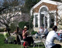You will see an entrance to the Arboretum on your right, a botanical park à l’anglaise, complete with a grotto and waterfall, containing some remarkable shrubs and trees. Follow the left-hand path uphill to the Maison de Chateaubriand, past the main entrance to the Arboretum. The entrance to the salon de thé in the Orangerie is just before the entrance to the house, with tables outside overlooking the park. Sipping tea here and appreciating the tranquil view, you will understand just why Chateaubriand enjoyed his exile so much.