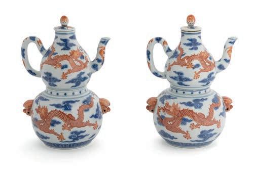 Bottom left A pair of mid-Qing dynasty Chinese double-gourd wine warmers, one of the pieces in Roseberys’ Chinese, Japanese and South Eastern Asian Art sale this month