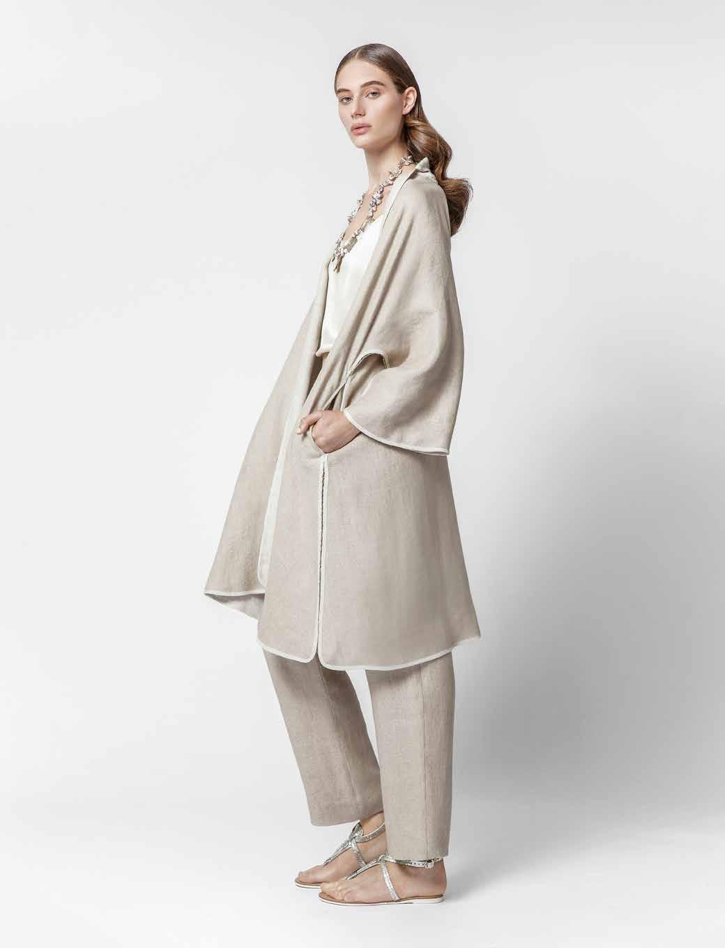 This egg coat and the iconic desert coat on the following page are updated versions of items that made Maskit famous decades ago. They are proof that good design lasts.