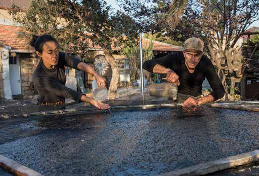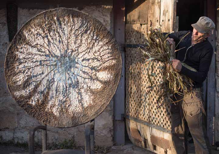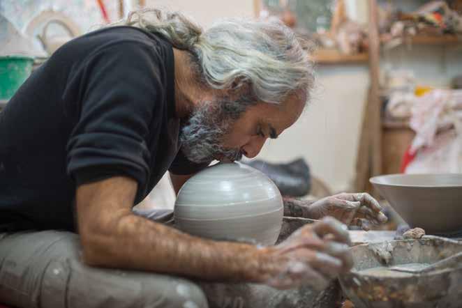 This enormous structure comes to life only once a year. It takes three weeks to prepare the kiln, of which seven days are needed to reach the correct temperature. It provides heat to cure the clay, and its wood ash provides the glaze for the objects that remain in constant flames for five to six days. It takes Meir two days to unload the kiln, after which he holds a sale. He has no idea what his works will look like when they emerge. The variation in the