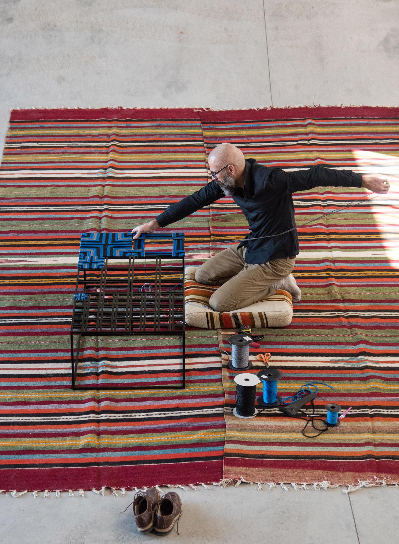 He started his final project at Shenkar by studying the history of carpets. He purchased several types of carpets and took them apart, feeling as though he was delving into history in the process. He then chose the loofah plant, a member of the cucumber family, for his project, as it embodies the main elements of life, with veins and a skeletal structure. Through deconstructing and reconstructing the plantâs fibers, he came up with a new and unique process to make carpets. The result was a thin lace surface that he dyed with natural coloring and then coated with silicon for stability and cleaning purposes. For this achievement, he received the collegeâs Printing Master award. He then used this process to create large, colorful baskets that add a joyful dimension to an interior.