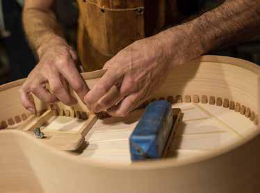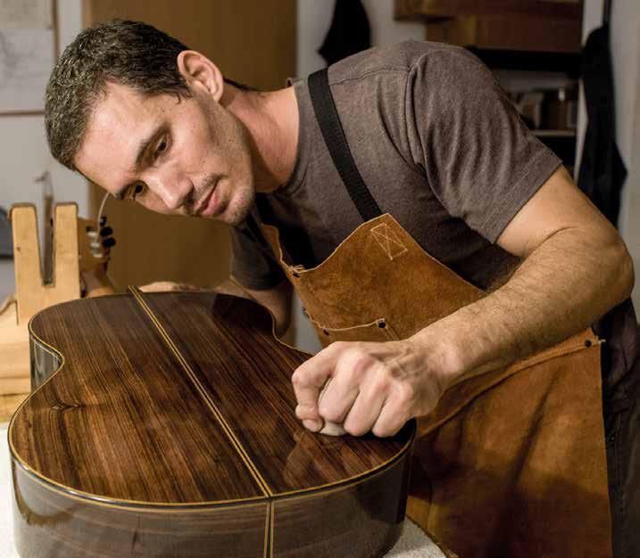 ing aspect is the French polish that provides the guitar with its external sheen. Applying successive thin coats of shellac made from the excretion of beetles in India is exacting work that also takes about a month and can cause injuries, such as carpal tunnel syndrome, from the repetitious hand movements it requires. The significant effort for the French polish is worthwhile, however, as it results in a very responsive instrument that is unsurpassed by any other polish.