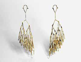A good mathematics student, some of her work is informed by geometrical progression. Consider her delicate mobile earrings, where each structural level doubles the weight of the one above it. Or her earrings that embody 64 small silver oblong pieces that are based on âtwo to the power of six.â Or her highly delicate metal branches that explore the concepts of coming together and coming apart.