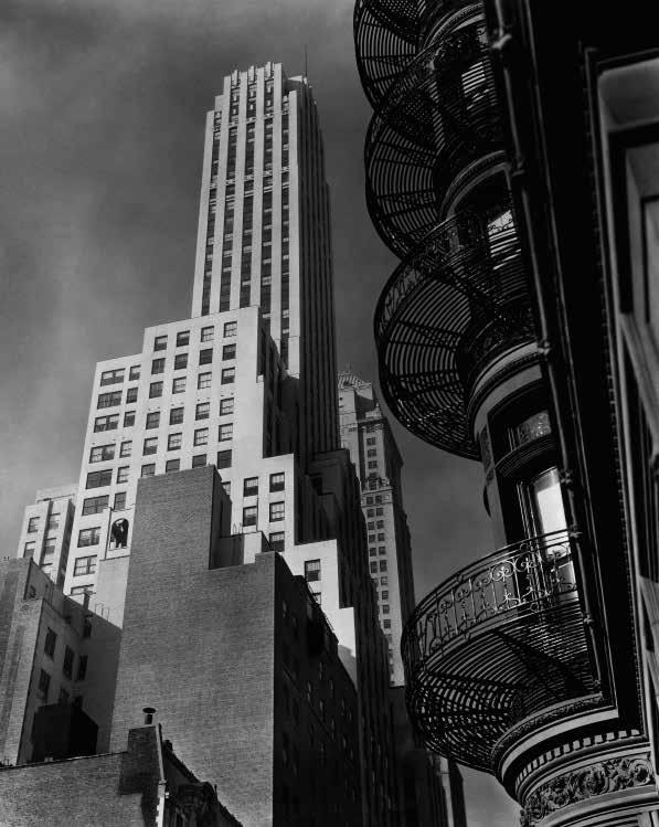 Abbott documents the contrasting geometric shapes created by the contours of New York City buildings. She uses an unusual camera angle, looking upward in such a way that the viewer’s eye sweeps up on an exciting journey and then tumbles down the jagged step shapes of what would have been a small skyscraper at that time. These forms are juxtaposed against the curvy wrought-iron balconies of an older building across the street, creating a jazzy interplay of disparate elements and a visual metaphor for the essence of New York City.