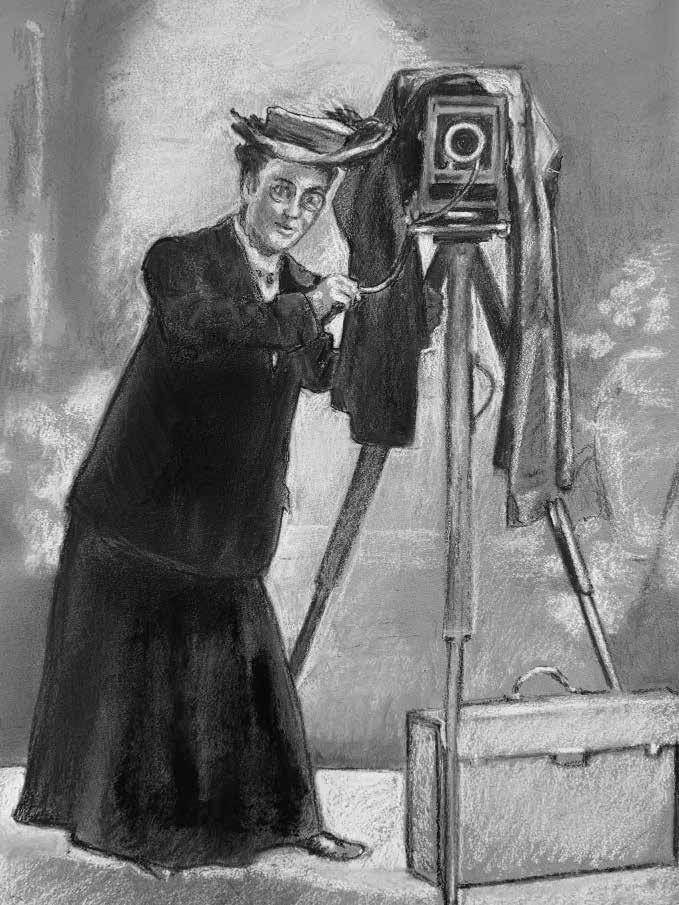 But what if (as was true a hundred years ago), in order to create a photograph, you needed 50–100 pounds of very expensive equipment, including a giant camera and metal or glass plates instead of film? What if you couldn’t send those plates out to a lab, but had to develop them yourself with special chemicals in a darkened room? What if the people whose pictures you wanted to capture had to sit for long stretches without moving? And what if traveling around to document historical events or important people was considered “man’s work”? These were the conditions for making high-quality photographs from the time the camera was invented in 1839, well into the twentieth century.