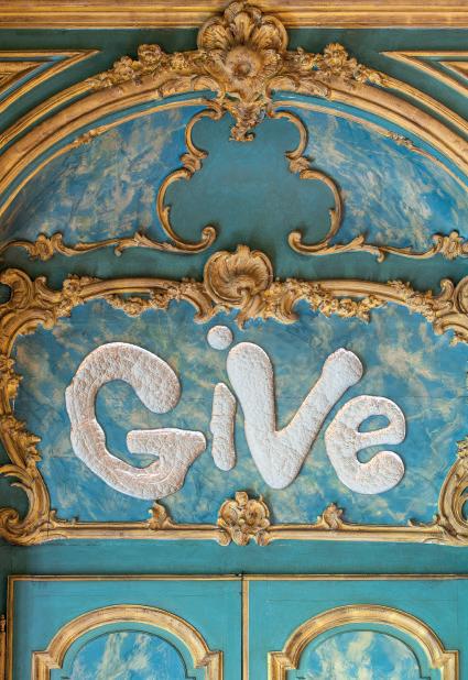 This contemporary glass piece by Rob Wynne spells out “Give”, a poetic gesture of generosity and joy, gifted to Isabelle and Hubert d’Ornano by their children.