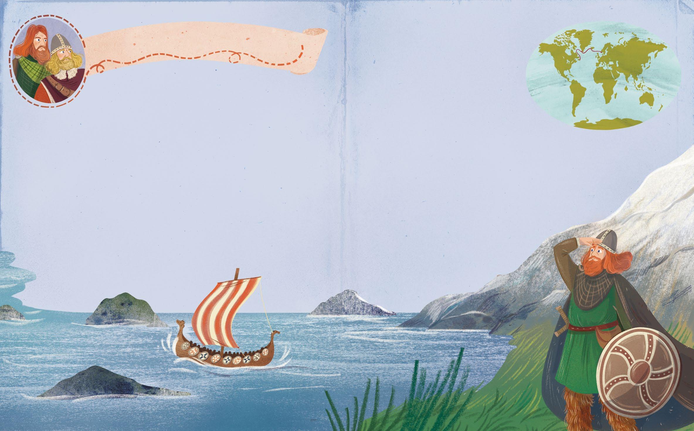 One of Erik’s sons was called Leif, and he loved the sea too. Leif had heard a story he couldn’t get out of his head: before reaching camp, very strong winds had pushed a ship beyond Greenland. On the horizon they had clearly made out a new and unexplored land. What was there beyond those waves? Leif took a fast boat, and like his father had done before him (and his great-great-uncle even earlier!), explored the cold Arctic waters until he found what he was looking for. He called that land Vinland, which we now call Canada!