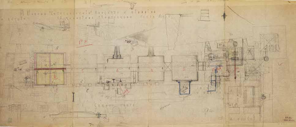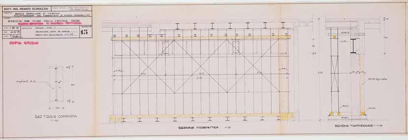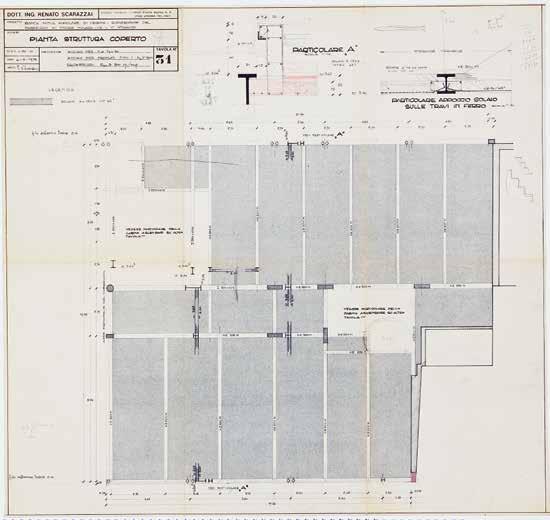 155. Plan of the flat roof (May 1975): the structure is made of steel, with concrete floors built with hollow terracotta floor slabs incorporated into the thickness of the load-bearing steel beams. The reinforced concrete