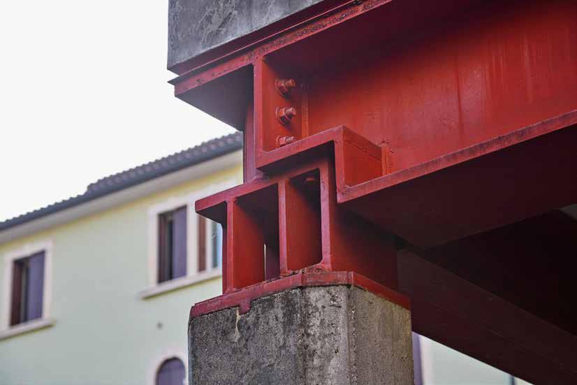 Steel is set in a universe of masonry, rendering and stone. Its apparent incongruity makes it seem like a heroic act and forces it to speak out, because its structural role is amplified.