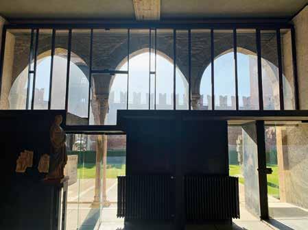237. The concrete slab forms an initial ceiling laid on concrete walls clad in grey stucco. This architectural structure fits into the Gothic loggia loggia of the Castelvecchio Museum’s Sculpture Gallery, Verona.