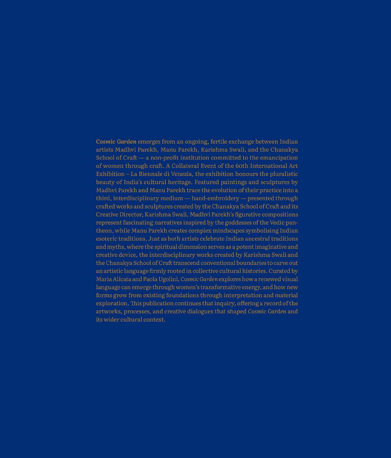 Originally established by Karishma Swali’s father, Mr. Vinod Shah, in the early 1980s, Chanakya International, a textile and embroidery house, expanded under her leadership, fostering collaborations with luxury fashion brands like Dior, Gucci, Prada, and Valentino as well as other non-profit organisations to preserve and perpetuate India’s diverse textile traditions. In 2016, recognising the imperative to formalise craft education and foster female autonomy, Karishma Swali established the Chanakya School of Craft. As a non-profit institution, the School is committed to sustaining cultural heritage while advancing new possibilities for women in the field. It offers training in regionally specific embroidery traditions — including kantha from Bengal, ari from Gujarat, and chikankari from Lucknow, among others — positioning these forms not merely as inherited techniques but as evolving artistic vocabularies.