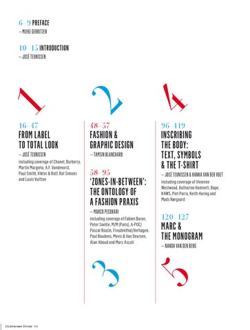 including coverage of Futurism, Bas Kosters, Henrik Vibskov, Walter Van Beirendonck, Bernhard Willhelm, Antoine Peters, Leigh Bowery, Sonia Delaunay and Dries Van Noten