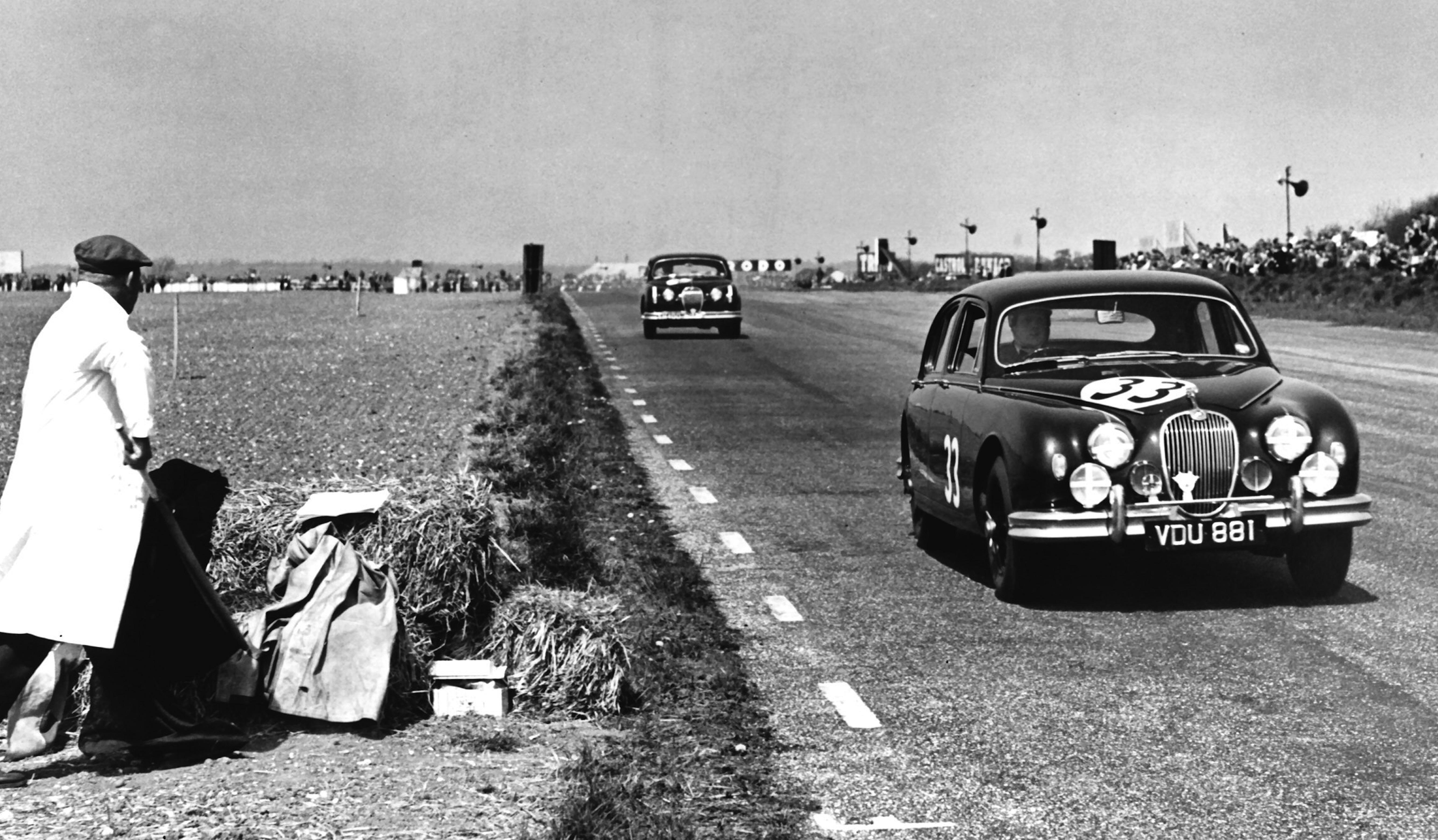 But he died, aged twenty-nine, in an absurd motor accident. According to police records, his British Racing Green Jaguar 3.4 Mark I – VDU 881 – had exactly 12,028 miles on the clock when he lost control on a slick Hog’s Back, the notorious blind bend on the A3 south of Guildford, a point you reach just as you escape the gravitational pull of London and approach the bosky Surrey Hills. This master of international motor sport was travelling too fast. Spinning, the car hit a bollard, bounced off a Bedford truck, and then ended its journey and his by demolishing a tree. The nearside front door impacted first and pushed the sill beyond the centre-line of the car. Engineers examining the wreck found the car was in third gear and the police estimated it had been travelling at 80mph. Just days before the crash, Hawthorn, who had never been seriously hurt in an actual race, had told a reporter: ‘The roads are getting proper death traps. The racetrack is safer than the road between London and Farnham.’