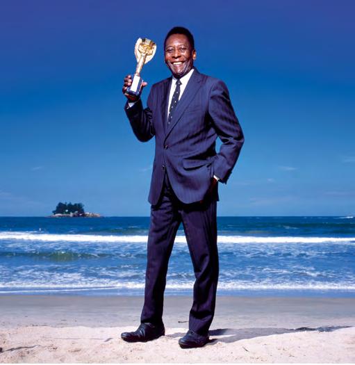 “A group of us went down to Brazil. And Pelé didn’t disappoint. He was great and was living like a king! We decided to take the portraits down by the beach, a beautiful setting. At first, we did the transitional kit shots, it was Pelé after all, but I was just finishing my book All About Bond, a collection of all my work on the sets of those films, so I thought why not ask Pelé to put on a suit and dress him up as the James Bond of football.