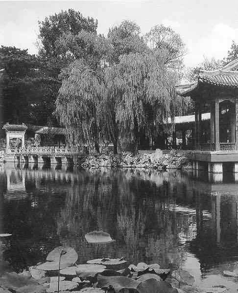 and covered willow walkways with willows by the walkway. Walking through a covered walkway on a summer day, one feels the coolness brought by the green which disperse the summer heat. In winter when the sun shines through leaves, one finds the cozy warmth comforting. In ancient times a covered walkway could be used to display paintings, thus it was called a covered painting walkway, whereas today stone strips with poetic lines are embedded in the walls an excellent use of the covered walkway.