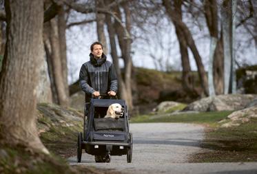 Engineered with larger dogs in mind, the trailer’s suspension system offers a comfortable and safe ride. The design is ergonomic for both animals and humans, with well-considered details and a soft yet distinctive aesthetic.
