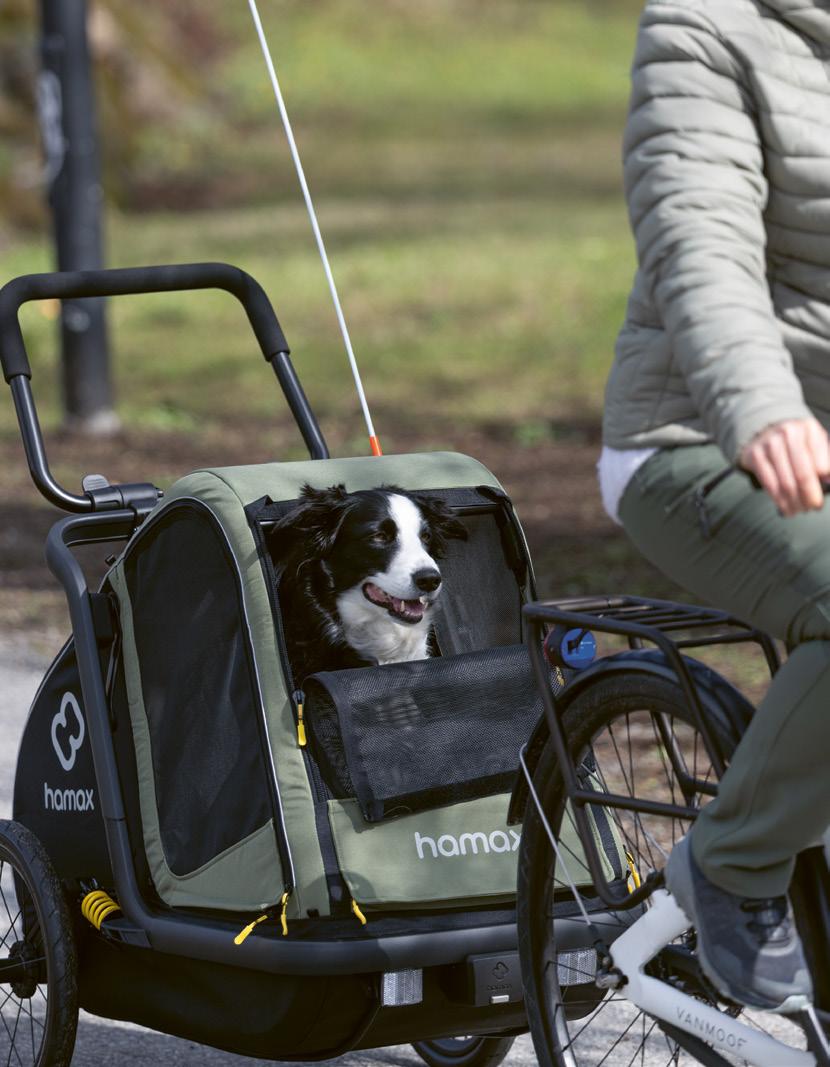 Exakt der Physiognomie größerer Hunde angepasst, lässt sich dieser Anhänger dank Federung komfortabel wie sicher fahren. Die Ergonomie stimmt für Tier und Mensch gleichermaßen, die Details sind sehr gut durchdacht und folgen einer weichen, aber dennoch charaktervollen Formensprache.