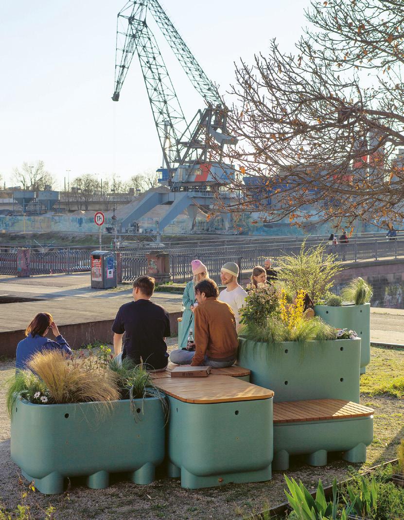 Urban greenery improves quality of life, cools the environment, reduces airborne particulates and CO 2, and provides a habitat for insects. Unfortunately, many green spaces are poorly maintained, and new plantings of ten fail due to budget constraints. This new range, with individually placeable modules that provide automatic watering for plants, elegantly circumvents these limitations. Made from recycled plastic using rotational moulding, each module holds 220 litres of water and an intelligent, solarpowered irrigation unit. When linked together, they provide a large reservoir of water, supporting versatile, robust seating landscapes that can be rearranged at any time in urban spaces. The seating is made from FSCcertified, locally sourced larch wood.
