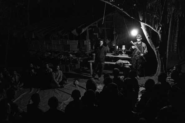 heart, he was still a poet. But in the metamorphosis from writer to fighter, did one replace the other, or did both selves coexist? When poets acknowledge that the sword may be mightier than the pen, what happens to them? He had been thinking about this. “Armed revolution is very difficult for me as a poet and human rights defender,” he said. He was now sitting down on a comfy sofa, in a quiet house, polishing off a lunch of Burmese nan gyi thoke noodles. “I am sure that I don’t like being a soldier. That’s not my life. I am here because the political system pushed me here. I am holding arms because I am unfortunate. I am not happy with that.”