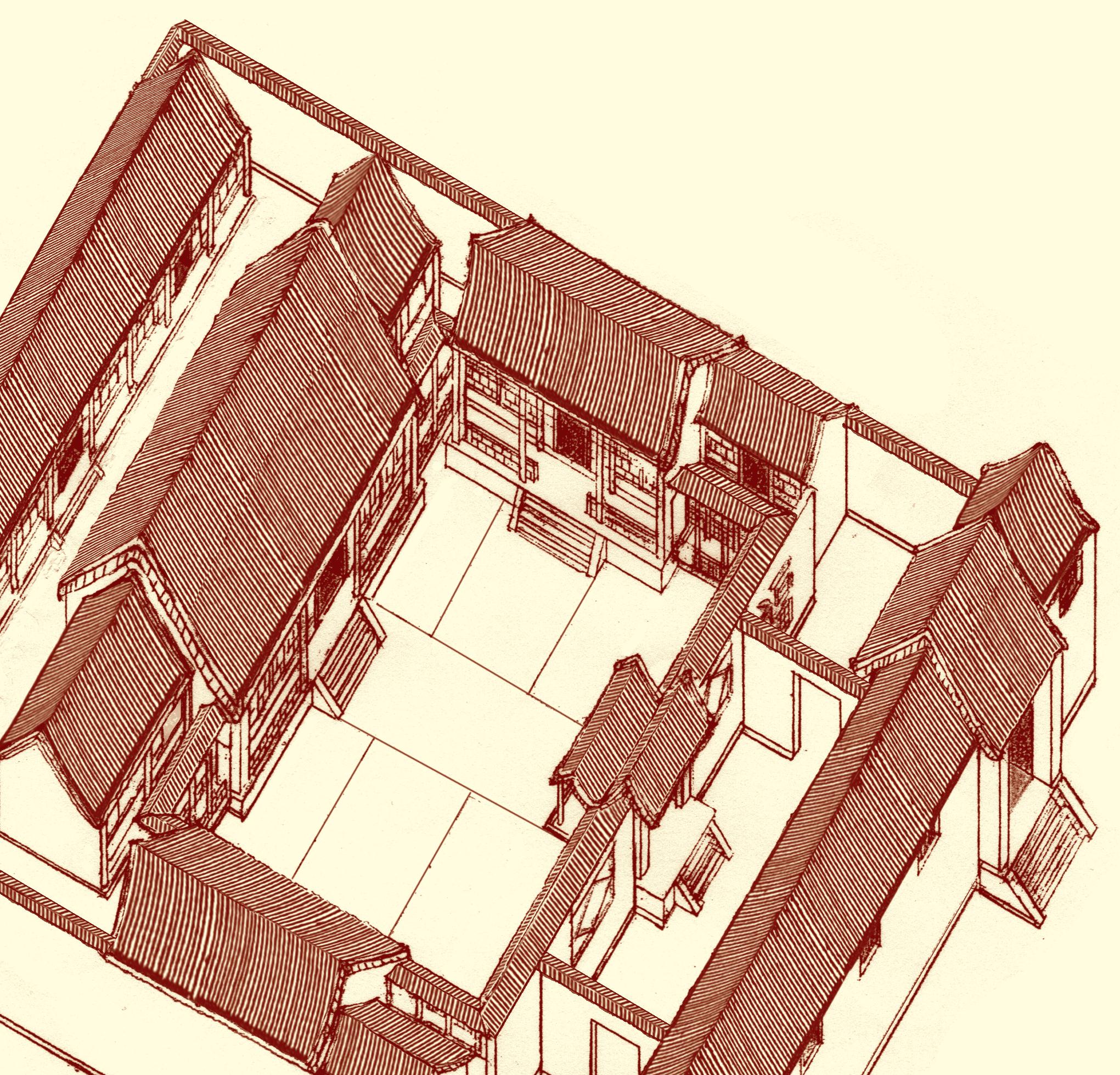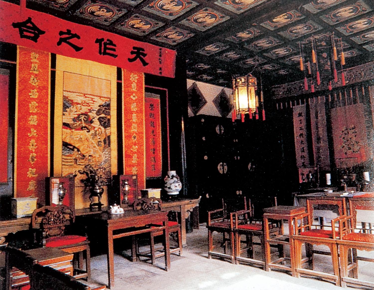 正廳、書齋及臥室均是院內基本的建設,房間 佈置都有特別的安排。特殊日子裏,正廳的扇 門都可以拆下來,把室內的空間延續至庭院中 央,以配合各種活動的需要。正廳有三「進」 寬,內部沒有分隔。「進」是四柱間所規範的空 間,後牆面向着入口處是最尊貴的位置,是放 置祭桌或長案,為舉行祭祀及拜祖用。