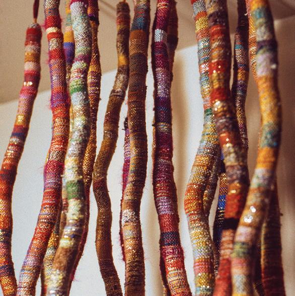 Increasingly, Laky immersed herself in textile history and techniques. The monumental role of the humble, ubiquitous strip, strand, string, yarn, wire or vine captured her attention and sparked her imagination. These basic linear elements initiated endless possibilities. She braided and spun rope. She wove tubes and stuffed them, wove with copper wire, and experimented with multiple woven and hand-construction techniques. Some of Laky’s earliest works, such as This is My Plastic Bag, 1969, p. 18, contained threads of the complex meaning and humor that would weave its way into her later sculptures. Constructed with linear