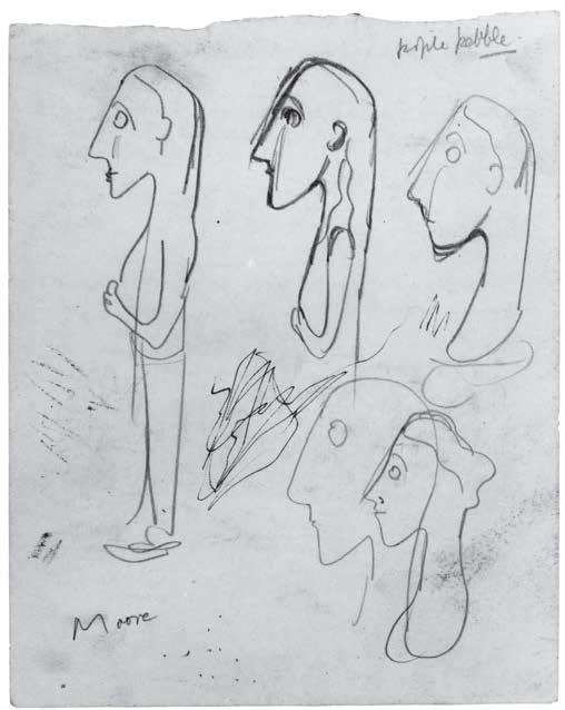 The importance of this is indicated in a sketchbook where, by a drawing (ill. left) relating to Head (LH 88, p. 26), Moore wrote ‘profile pebble’.2 Skeaping recalled how Moore was compelled to work all of the time: