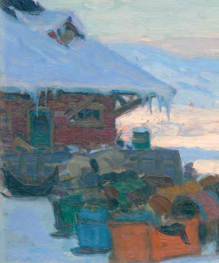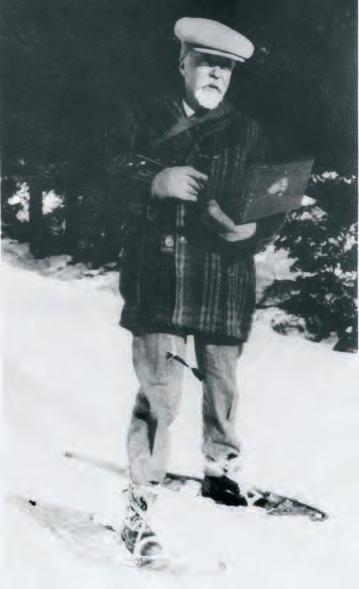Gradually Cullen developed his own method and techniques. He always sketched out-of-doors, even if it meant standing in freezing temperatures on snowshoes (fig. 8.2). He made his own small painting boards from the wood of young poplars; after dr ying them in heat, he plunged them in boiling linseed oil and painted them with a layer of white lead.