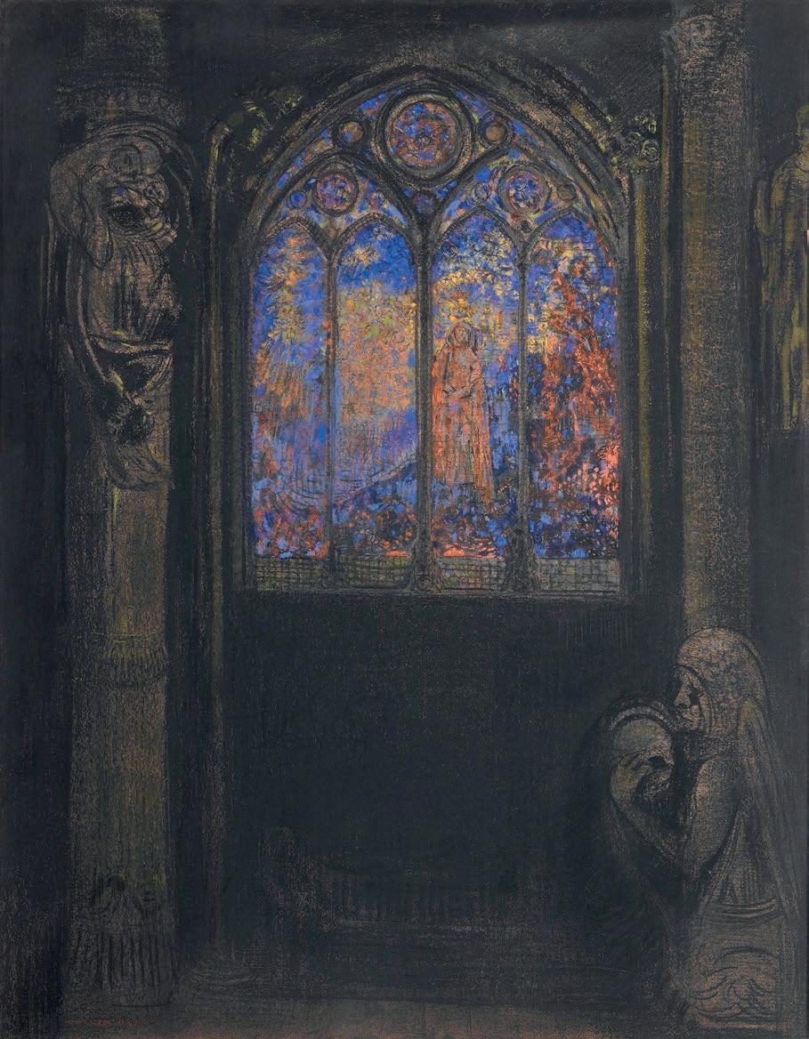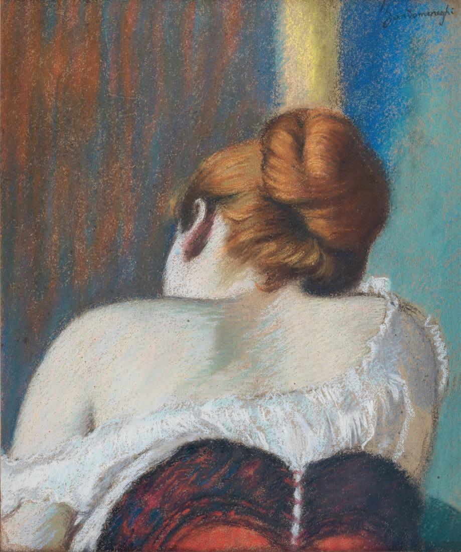 Two other artists who extended the use of pastel into uncharted territory are Caillebotte and Redon: the former produced very few examples whereas the latter was prolific. The singular and challenging viewpoints of Caillebotte’s paintings become even more enigmatic in his pastels (fig. 18), in which time is suspended, like a ‘freeze-frame’ in the cinema. Redon, meanwhile, explores worlds on the edge of time, or even beyond time through mythology, literature, world religions and mysticism (cats 66, 76, 77). As he wrote in his journal A soi-même: ‘My drawings inspire, and are not