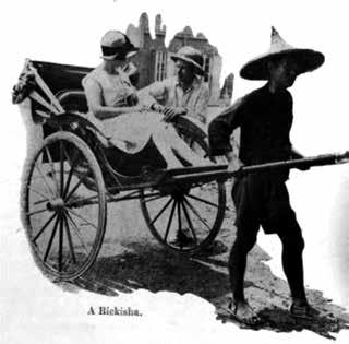 The streets of Bangkok are crowded with vehicles of every description – ramshackle and disreputable rickshaws, the worst to be found in all the East, drawn by sweating coolies; the boxes of wood and glass on wheels, called gharries, drawn by decrepit ponies whose harness is pieced out with rope; creaking bullock carts driven by Tamils from Southern India; bicycles, ridden by natives whose European hats and coats are in striking contrast to their bare legs and brilliant panungs; clanging street cars, as crowded with humanity as those on Broadway; and motors of every size and make, from jitneys to Rolls-Royces.
