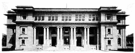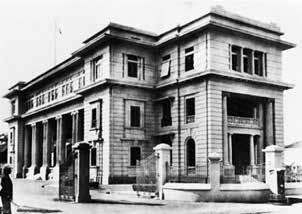 Business premises in Bangkok conforming in style and size to the importance of the port are rare. The handsome building in course of construction by the Borneo Company at Bantawai therefore is not only a matter of interest to the company. The building is a three-story structure constructed in ferro-concrete and brick throughout so being entirely fireproof. The methods of construction are entirely up-to-date and in many respects unique, being designed to obtain the best use of materials and labor conditions available in Bangkok. The total length of the building is about 200 feet and the height over 50 feet, the lower floor being about 19 feet. The exterior is treated in free Renaissance style, the main portico being composed of a colonnade of double Ionic columns running through the height of the first two stories. The orientation of the building is so arranged that the fullest advantage is gained from the prevailing hot season winds and the sun passes over the long axis of the building, so avoiding excessive heat from this source, in the working portions of the office. The interior consists mainly of a completely open space covering almost the whole area of the building, at floor, together with necessary offices, lavatory spaces, strong rooms and staircase spaces. The staircase wells at each end of the building are provided with Waygood-Otis electric lifts, serving all floors of the building.