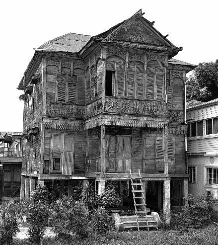 Louis Windsor’s house (“Baan Windsor”) was “located in a small Catholic community in Kudeejeen” on the river in Thonburi near Santa Cruz Church (Bangkok Post, 17 January 2016). According to local information, that house was demolished long ago; the “gingerbread house” which remains on the site (and is in need of restoration as of 2024) was brought at a later date from a different location. Photograph: The Editor.