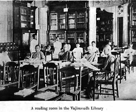 At first the library had its place inside the Grand Palace, but as the collection of books and manuscripts grew bigger the demand for more spacious premises became imperative, and in 1917 it was transferred to the building in front of Wat Mahathad. This building now houses the department of Printed Books which is called the Vajiravudh Library in memory of H.M. King Maha Vajiravudh or Rama VI, whose collection of books was, after His demise, handed over to the National Library. The public have free access to the Vajiravudh Library and can make use of several reading-rooms, one of which is specially reserved for the readers of newspapers and magazines, both Siamese and foreign.