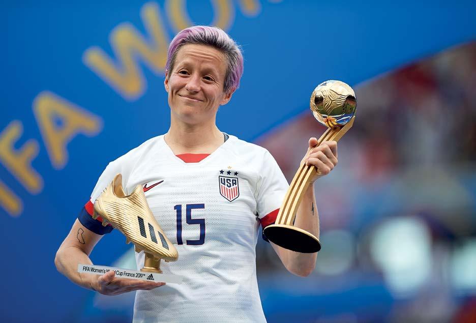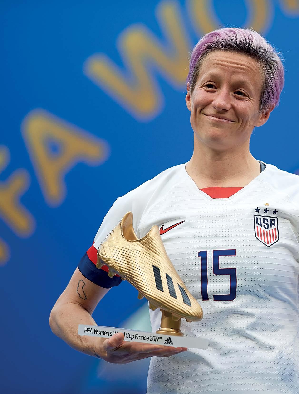 Megan Rapinoe with her Golden Boot (for the top tournament scorer) and Golden Ball (for the tournament’s best player, determined by a vote) after the 2019 Women’s World Cup final between the US and the Netherlands on July 7, 2019