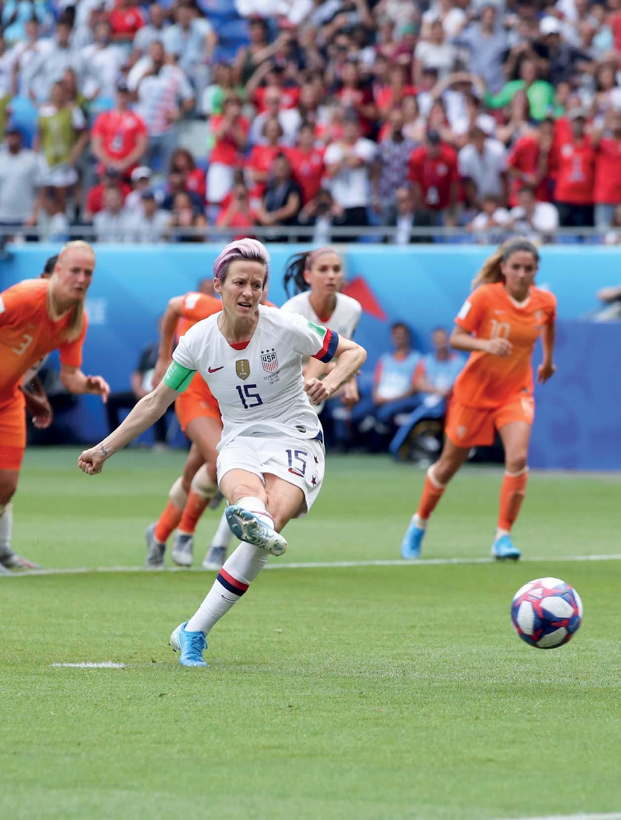 Rapinoe is a remarkably crafty and artful player, a soccer brainiac brimming with passion and finesse. Speed has never been her strong suit— particularly now that she is over thirty—but she is still agile enough to shake off defenders and take the shot.