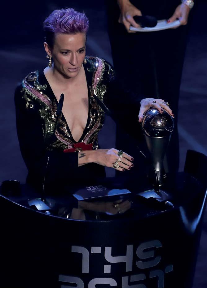 In her acceptance speech, Rapinoe thanked her partner, family, and friends back home in Redding, but also emphasized the solidarity of the American national team and the fighting spirit and unity that soccer can inspire: